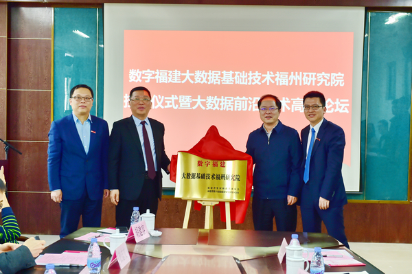 新闻中心讯/3月31日上午,数字福建大数据基础技术福州研究院揭牌仪式在福州大学数学与计算机科学学院举行。福建省发改委党组成员、数字办专职副主任陈荣辉,福建省教育厅副厅长陈国龙,福州大学副校长杨黄浩,福建省发改委数字福建综合规划处处长施友连等领导出席。美国德克萨斯理工大学终身教授林漳希,西北工业大学教授、计算机学院党委书记於志文,华南师范大学教授、计算机学院院长汤庸,福建省星云大数据应用服务有限公司总经理胡建容,国网信通亿力科技有限责任公司总经理辛永等近20家合作共建企业和研究所的领导和代表,以及福州大学科技处、数学与计算机科学学院等相关部门领导和教师参加了揭牌仪式。数学与计算机科学学院党委书记陈笃钦主持。