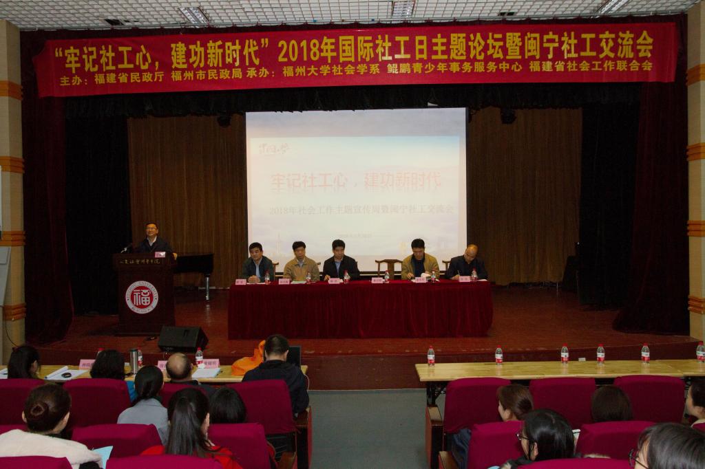 新闻中心讯/ 3月20日是国际社工日,由福建省民政厅、福州市民政局主办,福州大学人文社会科学学院承办的“牢记社工心,建功新时代”国际社工日主题论坛暨闽宁社工交流会在福州大学召开。福建省民政厅副厅长林弘,福州大学副校长黄志刚教授应邀到会致辞。