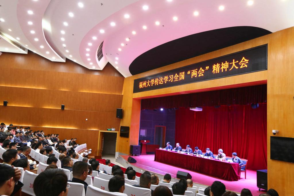 新闻中心讯/3月27日下午,福州大学召开党委(扩大)会议,传达学习全国“两会”精神,部署2018年工作。全体校领导、校党委委员以及全校中层干部参会。会议由校党委书记陈永正主持,付贤智校长传达十三届全国人大一次会议精神,并部署学校2018年度工作。