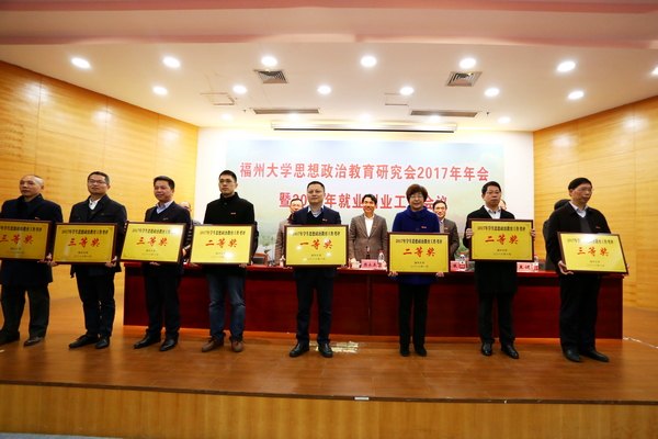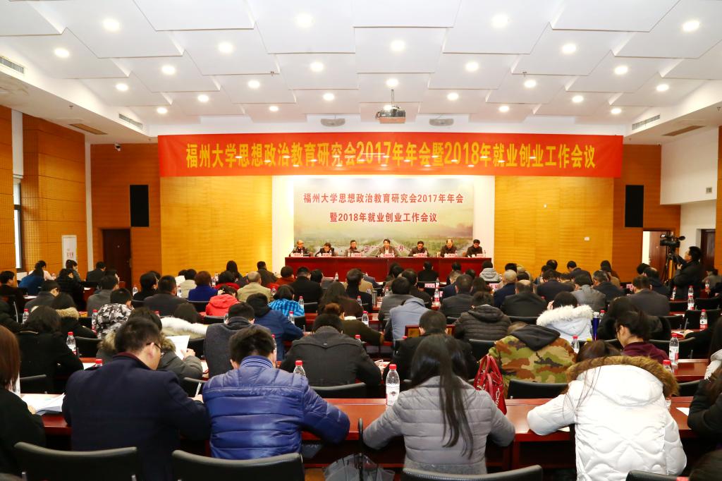 新闻中心讯/2月3日上午,福州大学思想政治教育研究会2017年年会暨2018年就业创业工作会议在行政北楼西325会议室举行。校领导陈永正、林生、黄志刚、王健等以及校部机关党务部门负责人、学生创新创业工作领导小组成员、各学院党委书记、全校学生政工干部以及获奖代表等参加了会议。