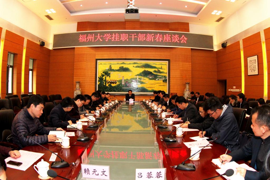 新闻中心讯/1月19日上午,福州大学在旗山校区举行挂职干部新春座谈会,校党委书记陈永正、校党委副书记林生出席会议。党办校办、组织部、宣传部、人事处、国家大学科技园管委会办公室、科技开发部等部门负责人参加了座谈会。会议由校党委副书记林生主持。