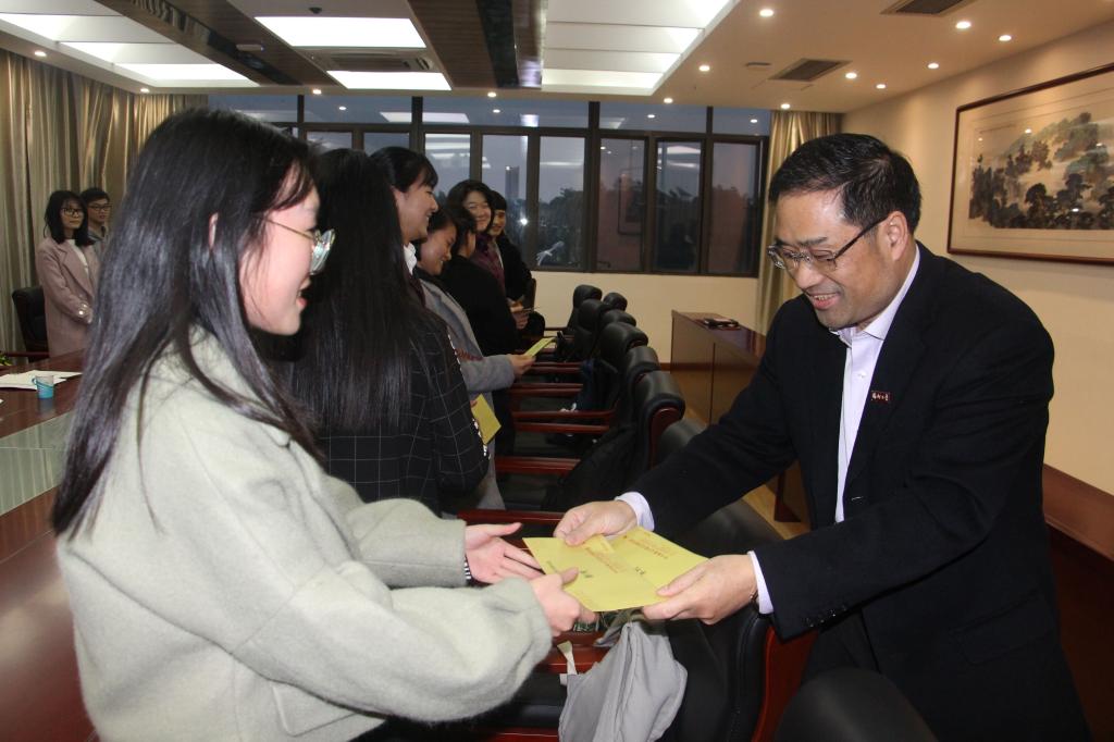 座谈会结束后,林生向各位学生党员一一发放了慰问金,向他们表达了校党委的关心,并致以新春的祝福。(图/李连富)