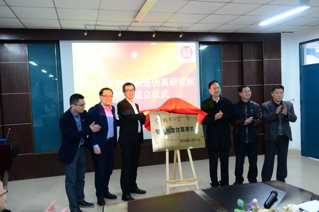 新闻中心讯/1月25日下午,福州大学智能制造仿真研究院揭牌暨成立大会在福大数计学院举行。中国科学院院士,清华大学计算机系张钹教授、清华大学黄必清教授、福耀集团副总裁夏乐冰、福州大学副校长杨黄浩、福耀集团相关部门领导专家、福州大学科技开发部以及数计学院相关负责人等参加了成立大会。