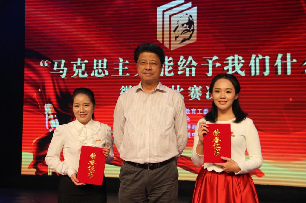 王欣同学以《有温度的主义》为题,阐述了她所认识的马克思主义,其演讲声情并茂、主题突出,赢得了全场评委的高度认可,带给观众心灵的洗礼。刘燕芬同学以《见微知著说变化》为题,用其祖辈、父辈和自身经历,生动形象地展示出中国在马克思主义的指引下发生了翻天覆地的变化,其演讲情真意切、感人至深,赢得了评委的一致好评。
