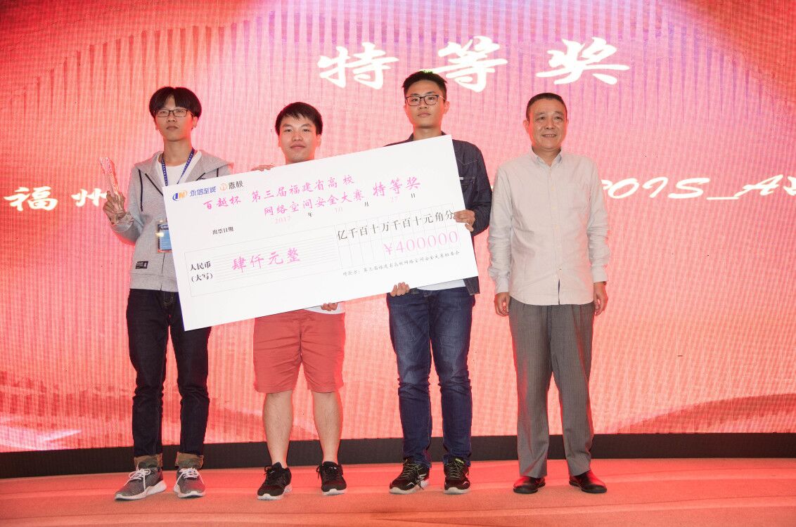 同样来自我校的福州大学ROIS_B队 (指导老师:倪一涛,参赛者:何雅清(2015级信息安全专业本科生),林飞(2015级信息安全专业本科生),李明达(2015级计算机专业本科生))获得了二等奖, 福州大学ROIS_C队 (指导老师:董晨,参赛者:洪文涛(2016级信息安全专业本科生),尤菲芙(2016级信息安全专业本科生),何雪钦(2016级信息安全专业本科生))获得三等奖。