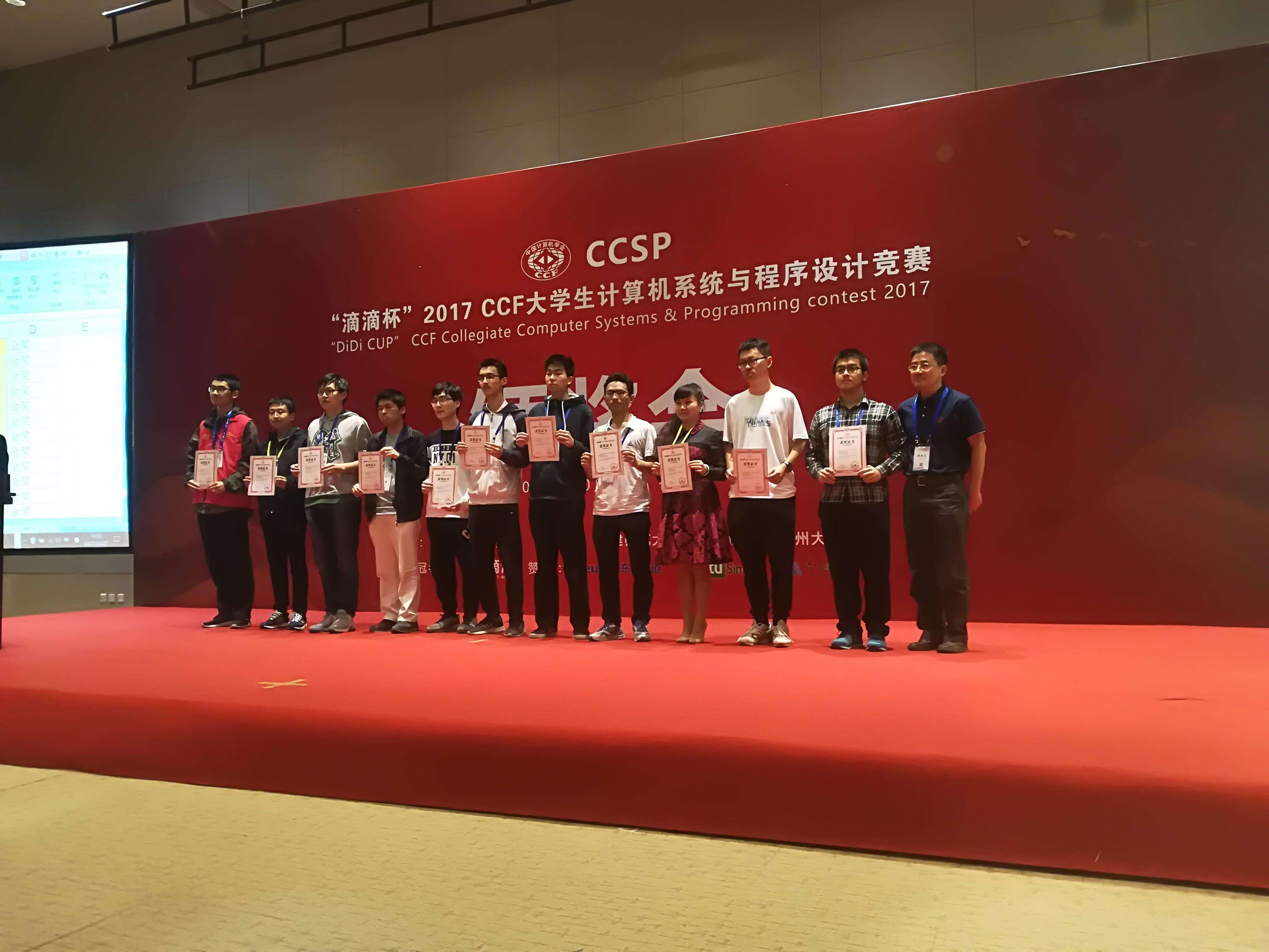 2017CCF大学生计算机系统与程序设计竞赛(CCSP)及颁奖会于10月26至27日在福州成功举办。我校数学与计算机科学学院参赛选手共获2个金奖,5个银奖,2个铜奖,我校团体成绩进入高校排行榜前五名。