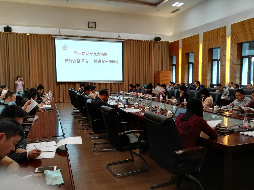 杨黄浩副校长首先传达了当前国家最新的学位点建设和质量评估文件精神,分析了当前学位授权的改革趋势。接着,对我校即将启动的合格评估工作进行了动员部署。结合双一流建设部署会的精神,他提出了四点工作要求:一是要学习贯彻十九大精神,以双一流建设为指导,科学谋划学位点合格评估工作;二是要实事求是开展自评工作,避免形式化、走过场;三是要明确责任,落实到位;四是要边评边改,积累经验。最后,杨黄浩副校长强调,我校双一流建设已经正式启动,相关学院和学位点要认真贯彻落实十九大精神和双一流建设部署会精神,立足全局、科学谋划,将合格评估与学位点发展相结合、与学院发展相结合、与学校战略定位相结合,积极努力,稳妥推进,为创建“具有若干世界一流学科的创业型国际知名高水平大学”目标而奋斗。