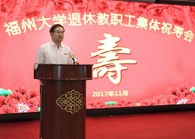 校党委林生副书记首先代表学校党委和行政领导以及在职的全体教职员工,向全体老同志致以崇高的敬意和亲切的问候,并向寿星简要介绍了近年来学校事业发展取得的明显成效,向广大老同志为学校发展建设所做出的贡献表示衷心的感谢。林生副书记表示学校党委将继续高度重视离退休工作,继续努力为老同志办实事、解难题,让老同志共享学校改革发展的成果。林生副书记希望全体老同志能够按照中央关于“为党的事业增添正能量”的要求,一如既往地关心支持学校的建设发展,为学校“双一流”大学建设增添正能量,共同创造福州大学更加美好的明天。