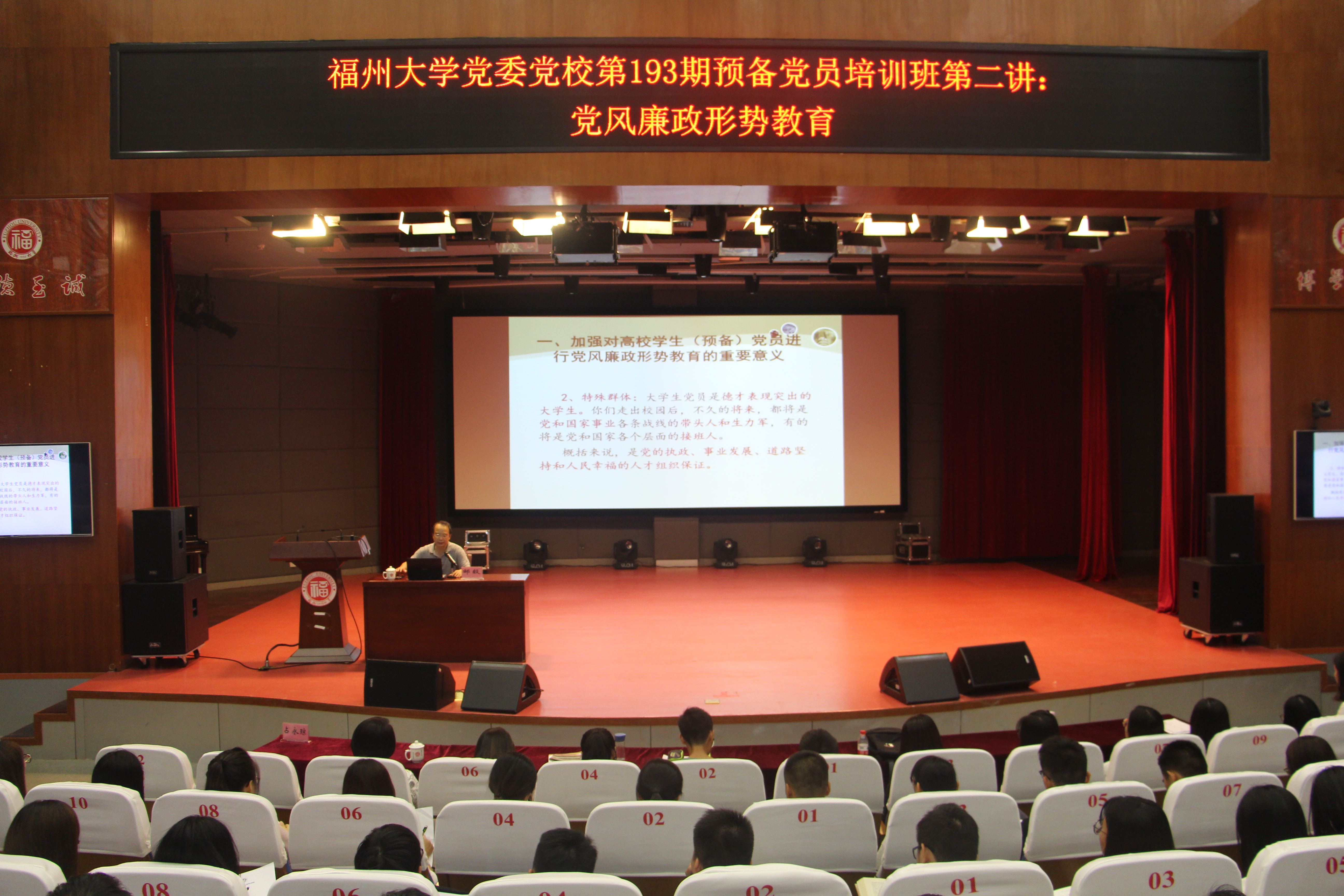 10月12日晚,党校第193期预备党员培训班第二讲在图书馆博学厅举行。校党委常委、纪委邹毅书记为学员们讲授题为《党风廉政形势教育》的专题党课。