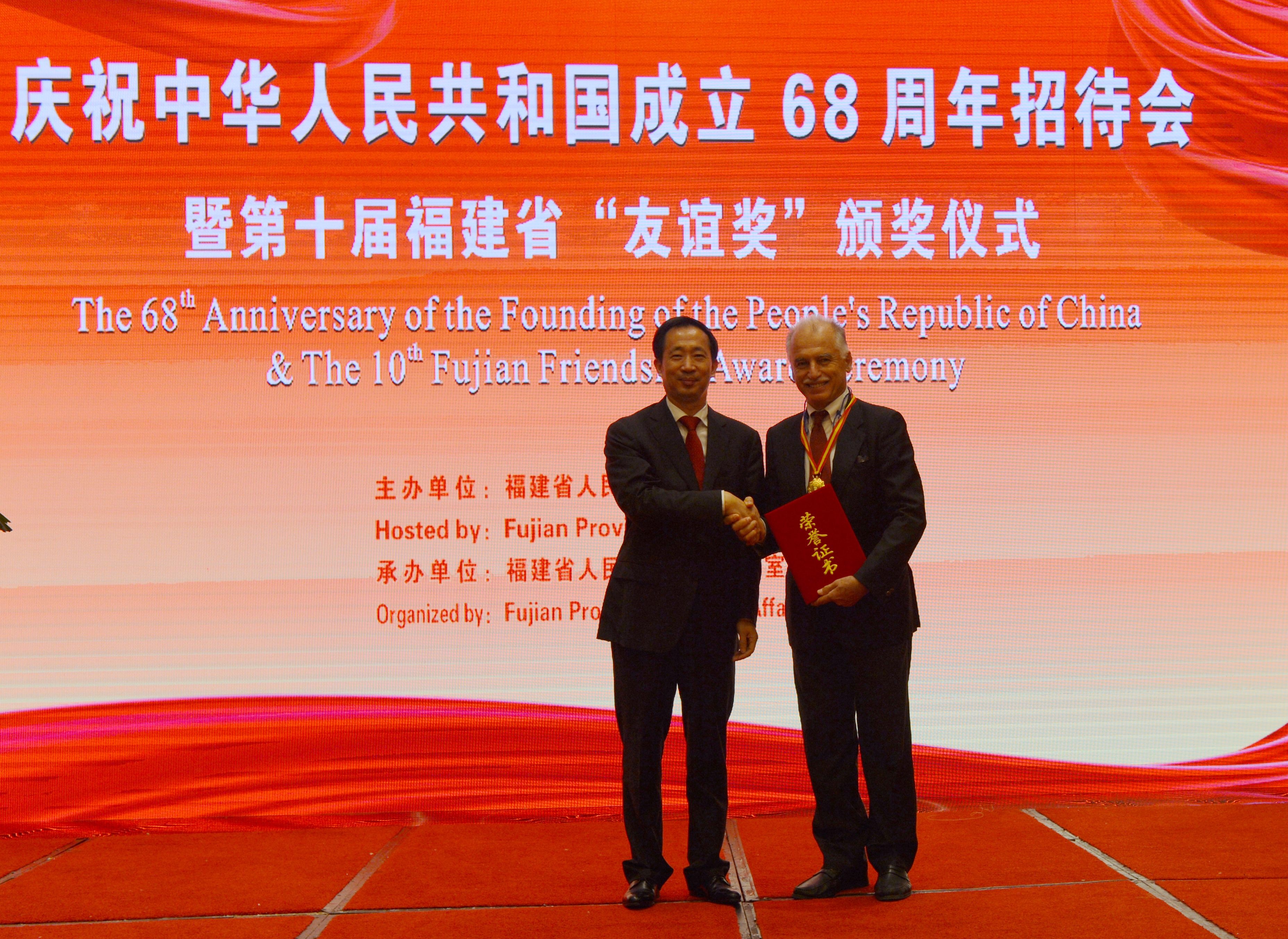 9月29日晚,我校10名外国专家与留学生代表参加了福建省庆祝中华人民共和国成立68周年招待会暨第十届福建省“友谊奖”颁奖仪式。李德金副省长向外国嘉宾的到来表示欢迎,感谢国际友人对福建省社会经济发展所做出的贡献,并为获得第十届福建省“友谊奖”的15位外籍人士颁发了奖牌和证书。我校土木工程学院意大利籍专家Camillo Nuti教授喜获殊荣。