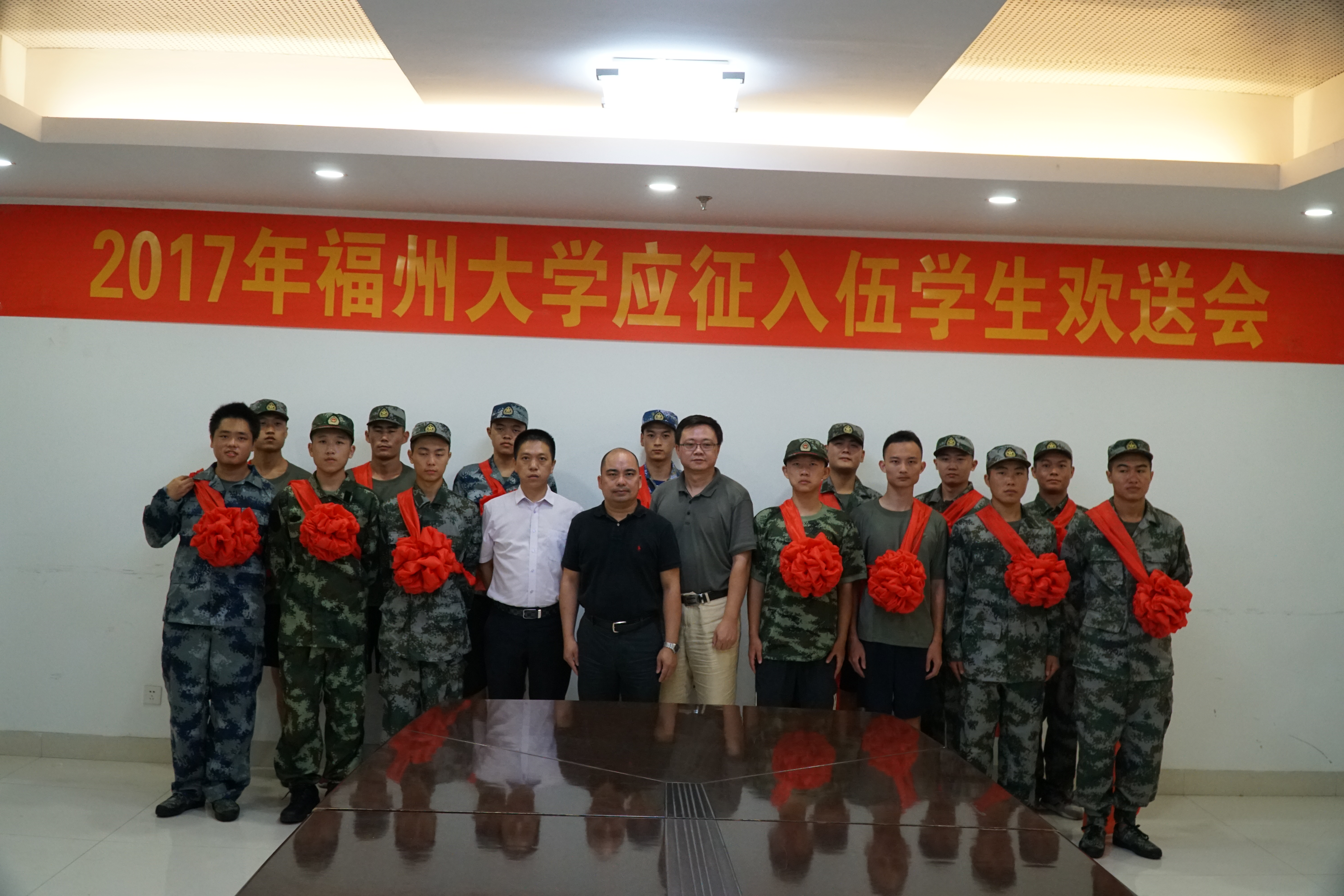 长期以来我校高度重视大学生应征入伍工作,通过加强组织领导,广泛宣传发动,调动了广大学生应征入伍的积极性。经过严格的体检和政审,今年我校共有22名男生从学校对口所在地鼓楼区武装部应征入伍。有志青年志在四方,热血男儿投笔从戎。让我们祝福所有应征入伍新兵,拥有一段崭新的生活,为福大争光,为祖国的国防事业做出贡献。