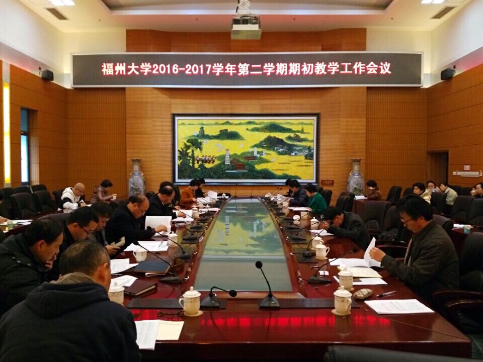 2017年3月17日下午,福州大学在行政南楼123会议室召开2016—2017学年第二学期期初教学工作会议。会议由王健副校长主持,各学院分管教学院长、教学办主任、本科教学干事以及教务处相关人员、校教学督导组负责人参加了会议。