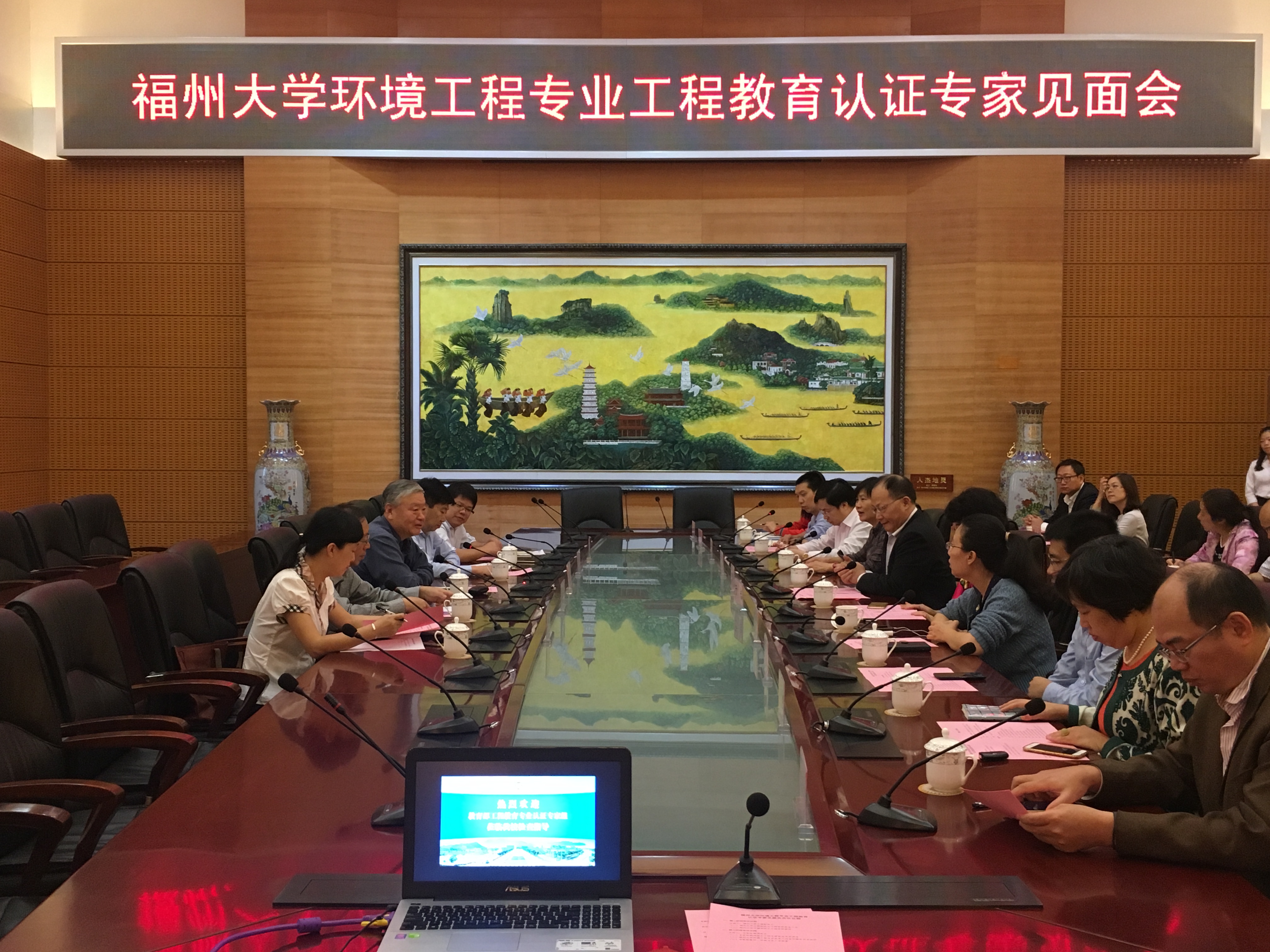 11月14日上午,福州大学在旗山校区行政南楼123会议室举行工程教育专业认证专家见面会,王健副校长以及教务处、人事处、财务处、团委、学生工作部、图书馆相关职能部门负责人、环境与资源学院全体领导班子和环境工程专业教师代表参加了会议。王健副校长代表学校向专家组介绍了学校概况、建设进展及战略目标,强调福州大学高度重视工程教育专业认证。随后环境工程专业负责人潘文斌副院长对本专业工程教育认证工作的完成情况及针对自评报告审查意见的改进工作进行了简要汇报。