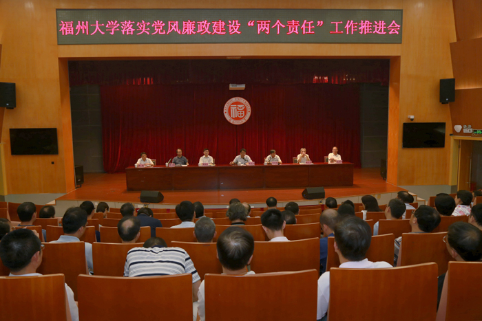 9月1日下午,福州大学落实党风廉政建设“两个责任”工作推进会和省委巡视组对福州大学党委专项巡视的反馈意见整改工作推进会在图书馆明德厅召开。校党委陈永正书记主持会议并讲话,校纪委邹毅书记就落实全校党风廉政建设“两个责任”工作和推进巡视整改工作进行了具体部署。校领导付贤智、陈尚义、陈少平、范更华、张星等出席会议。