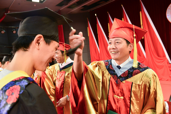 在随后的学位授予仪式上,主席台全体领导共同为毕业生代表颁发学位证书、执拨穗礼,并与毕业生一一合影留念。伴随着激昂的《毕业歌》,福州大学2016年毕业典礼暨学位授予仪式圆满落下帷幕。