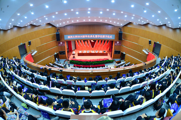 新闻中心讯/6 月24日上午,福州大学在旗山校区图书馆博学厅隆重举行2016届毕业典礼暨学位授予仪式。校领导陈永正、付贤智、陈尚义、陈少平、邹毅、王健、张星出席 典礼。参加毕业典礼的还有各学院党委书记、院长、机关部处负责人、2016届优秀毕业生、考研升学先进个人、海外留学生代表等近500名。毕业典礼由校党委副书记陈少平研究员主持。