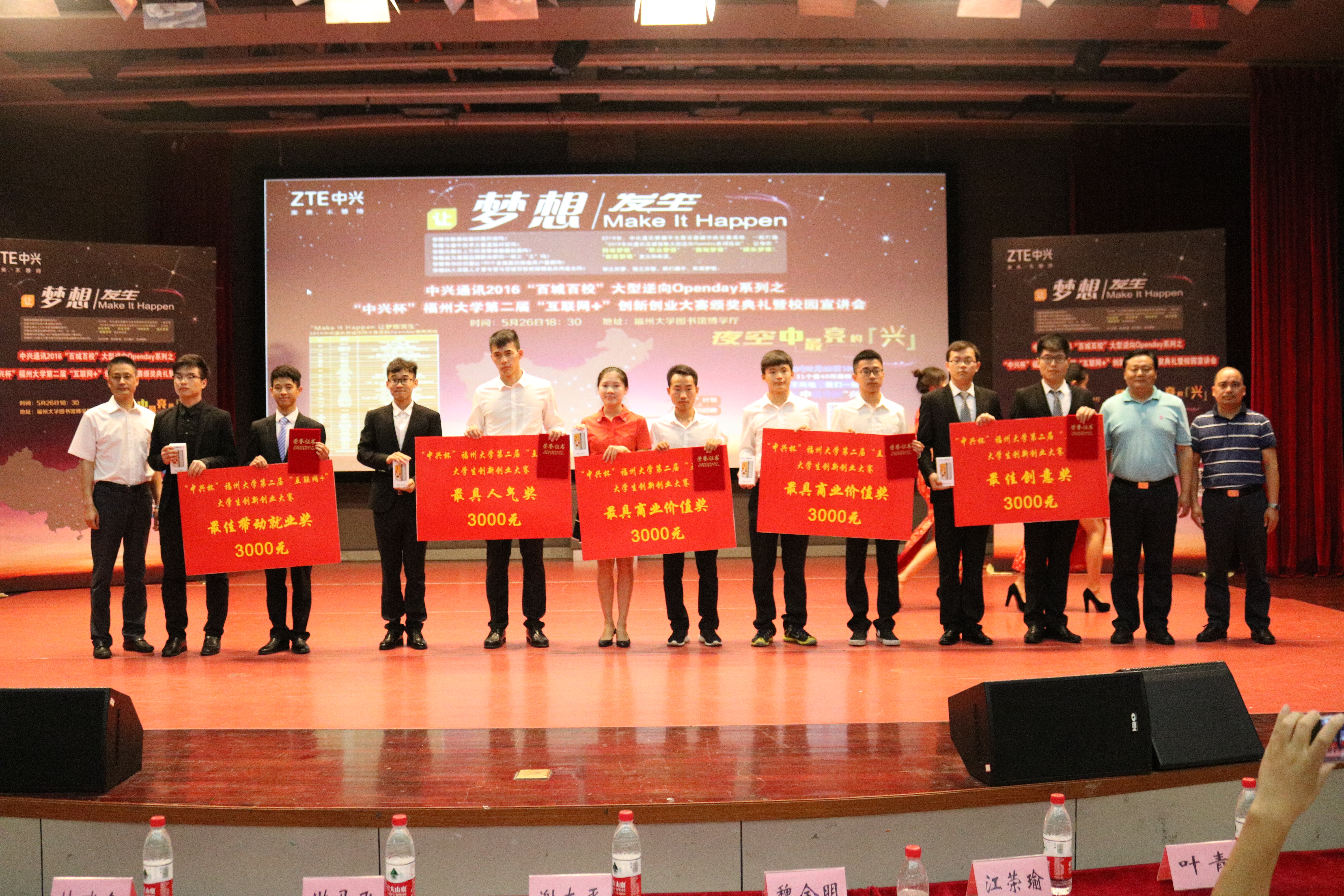 5月22日,“中兴杯”第二届“互联网+”大学生创新创业大赛校赛于我校旗山校区图书馆博学厅、明德厅成功举行。本次大赛由学生工作部(处)、教务处主办,经济与管理学院、数学与计算机科学学院承办,大赛邀请福建各个地区的投资人担任本次大赛的评委。5月26日晚,大赛颁奖仪式在图书馆博学厅举行,省教育厅学生处谢友平处长,中兴通讯股份有限公司福州分公司洪马飞副总经理,我校学生工作部(处)、教务处、团委等有关部门负责人和部分学院老师出席颁奖仪式。