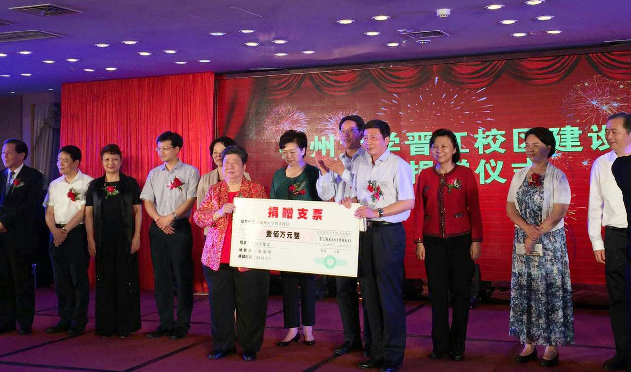 5月7日,福州大学晋江科教园建设资金捐赠仪式在晋江金井举行。仪式由晋江市长刘文儒主持,泉州市委常委、晋江市委书记李建辉致辞。中央人民政府驻香港联络办公室主任张晓明,全国政协港澳台侨委员会副主任华建,中共福建省委常委、省委统战部部长雷春美,福建省人大副主任刘群英,河南省政协副主席孔玉芳,原菲律宾外交部副部长周清琪,全国政协常委李羚,香港福建社团联会主席吴良好,香港福建社团联会荣誉主席李广兆,以及我校校长付贤智、学校有关部处负责人和师生代表参加了仪式。