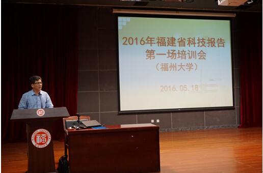 为深入贯彻落实《国务院办公厅转发科技部关于加快建立国家科技报告制度指导意见的通知》(国办发〔2014〕43号)、《福建省科技报告制度建设工作方案》(闽科计〔2015〕9号)和《福建省科技计划项目科技报告暂行管理办法》(闽科计〔2015〕46号)等文件要求,福建省科技厅2016年计划在全省范围内组织召开17场科技报告培训会,本次在我校召开的培训会为本年度首场培训会。