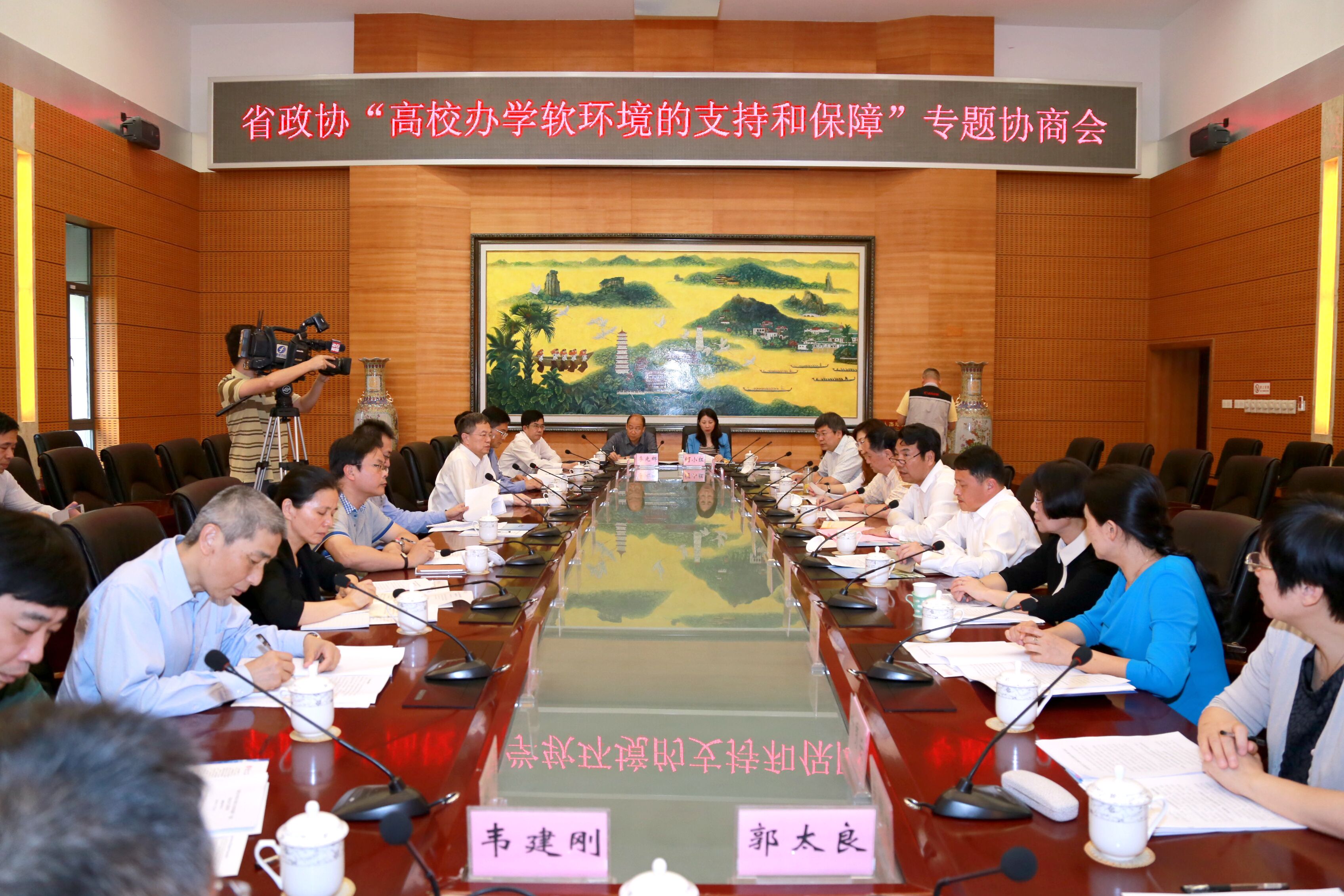 5月18日下午,省政协在我校旗山校区行政南楼123会议室召开“高校办学软环境的支持和保障”专题协商会。会议由省政协薛卫民副主席主持,张帆副主席出席并作讲话。省科技厅、财政厅、外事办、审计厅等省直单位负责同志到会与委员协商回应。校党委陈永正书记及在校的全体省政协委员参加会议,张星副校长和校科技处、计财处、外事办、设备处等相关部处负责人应邀列席。