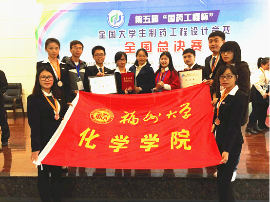11月15日,第五届“国药工程杯”全国大学生制药工程设计竞赛全国总决赛于武汉工程大学落下帷幕。由我校化学学院2012级徐怀相、龙庆婷、何月桂、高芳、薛旭明五名本科生组成五环制药代表队和2012级何太波、冯泽明、王勉、吴梦婷、华建豪五名本科生组成的金山制药代表队,共两支队伍代表福州大学参加了本次比赛,其中五环制药代表队以初赛第六名的成绩进入全国总决赛。参赛队伍由化学学院陈宪副教授任指导老师,经过激烈角逐,五环制药队获全国二等奖,金山制药队获全国三等奖。