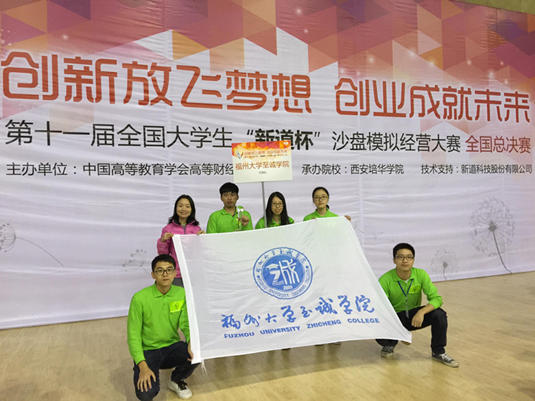 日前,第十一届全国大学生“新道杯”沙盘模拟经营大赛全国总决赛在陕西西安成功举行,来自全国29个省市、自治区的108所高校的540名选手参加了比赛。由至诚学院企业沙盘模拟协会的蒋家伟、邱福星、缪海浜、黄雅丽、林诺5位同学组成的代表队在至诚学院洪防璇老师的指导下,通过省赛的考验,顺利晋级此次全国总决赛,并一举夺得总决赛一等奖。