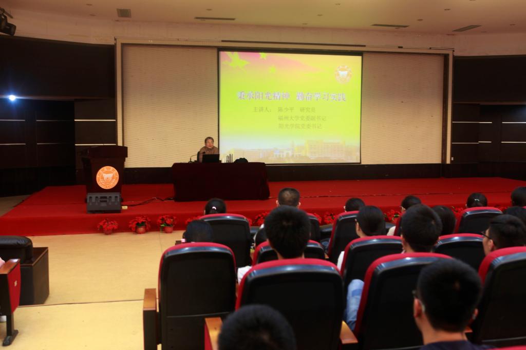 11月16日晚,校党委副书记、阳光学院党委书记陈少平研究员,为全体学生党员作了主题为“秉承阳光精神,勤奋学习实践”的讲座。