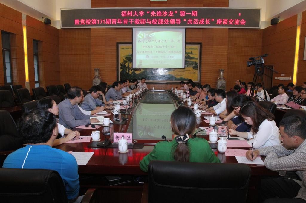 11月17日下午,我校“先锋沙龙”第一期暨党校第171期青年骨干教师培训班学员与校部处领导“共话成长”座谈交流会在旗山校区行政南楼123举行。校党委书记陈永正出席,校机关部处负责同志参加了此次沙龙。