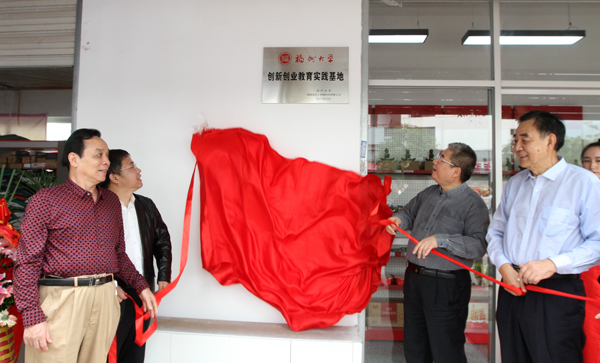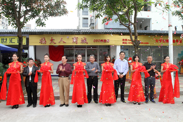 校党委副书记陈少平、原福建省工商局局长赵觉荣、福建金凤经济发展促进会副会长兼秘书长郑开训、校学生工作处(部)处长程文忠、福州市青年创业会促进会会长、福建光阳蛋业股份有限公司董事长余劼共同为福州大学创新创业教育实践基地——福大人商城O2O体验店开业剪彩,并为实践基地揭牌。