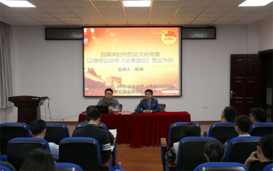 11月5日晚,法政论坛第三讲顺利进行。陈锦检察官开展“自媒体时代的法文化传播——以微信公众号《法律读品》营运为例”专题讲座,主要介绍了新媒体的时代发展、从业历程、《法律读品》运营的相关数据和法律文化传播思维等内容。