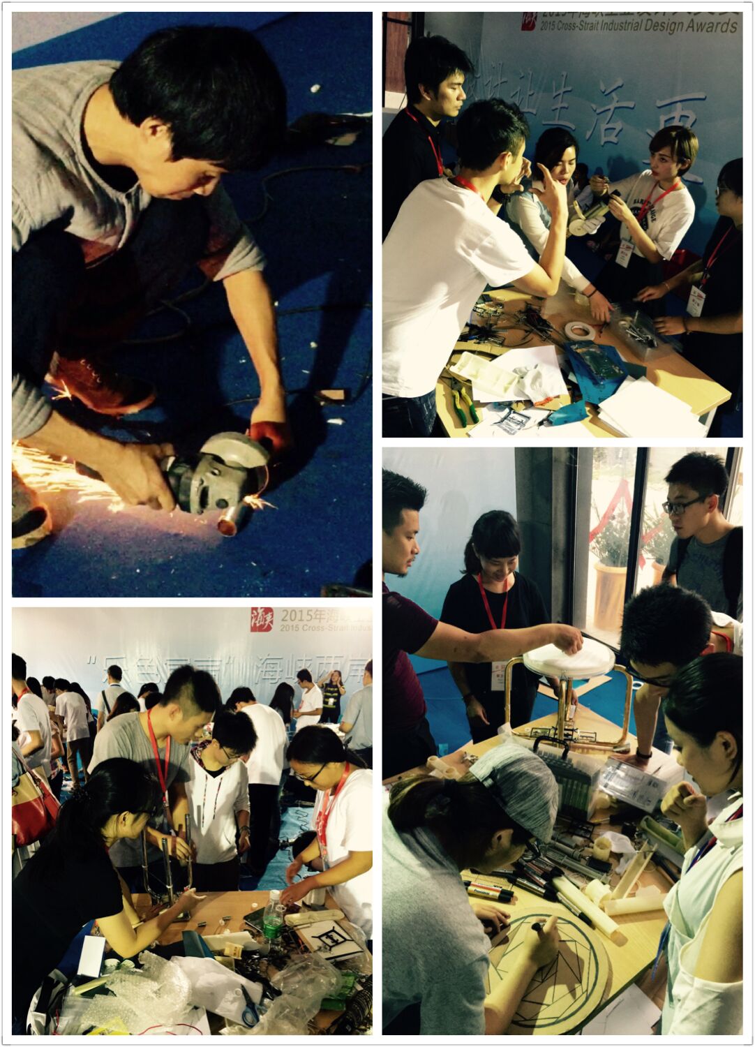 来自台湾高雄第一科技大学、铭传大学、台南应用科技大学、台北科技大学的30位同学与来自厦门七所高校的50位同学,混编组成了15支设计团队,从现场的工业生产余料和废弃物中挑选出合适的物料,发挥自己的创意和激情,利用自己的“创新”专长对它们进行“设计再造”。