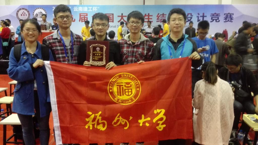 日前,第九届全国大学生结构设计竞赛在昆明理工大学举行,由土木工程学院2013级学生林俊超、林锋、陈文伟组成的福州大学代表队在学院陈力波老师、许美玲老师的带领下携作品“云梦”荣获大赛二等奖。