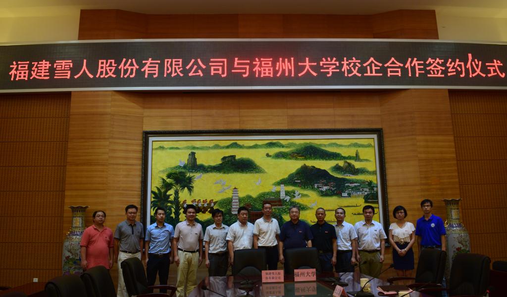 日前,福建雪人股份有限公司与福州大学校企合作签约仪式在行政南楼123会议室举行。雪人股份有限公司和我校双方代表就学术合作、成果转让、科研合作、人才合作以及设立福州大学雪人奖学金等方面签订了校企合作协议。