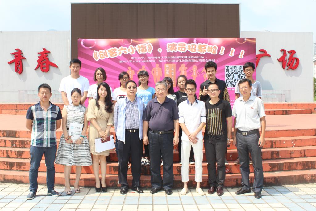 9月17日,微电影《创客六小福》主创团队在福州大学正式启动演员招募工作,招募启动仪式在一区青春广场举行,校党委陈少平副书记、福建海峡传统文化研究院何宜健院长、人文社会科学学院相关领导以及该团队主创人员出席了此次仪式。