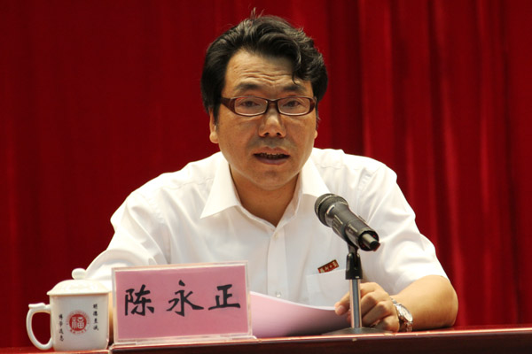 校党委书记、校党的群众路线教育实践活动领导小组组长陈永正作总结报告 记者 李连富 摄