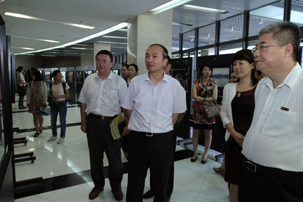 启动仪式开始前陈吉副厅长与陈少平副书记参观摄影展 记者 李连富 摄