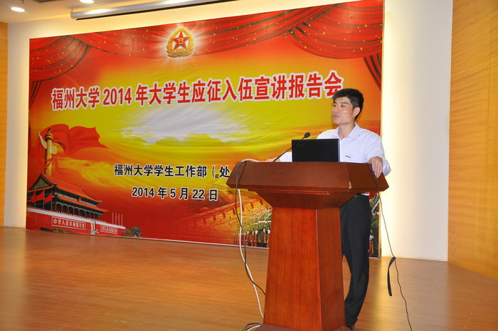 鼓楼区大学生入伍优秀代表王慧首先作了主题报告。王慧是我校人文学院音乐学专业2007级学生,2009年大三入伍,2011年退伍,曾在部队获得三等功等多项荣誉,现在就职于至诚学院。他结合自身入伍经历,对大学生入伍的心得体会及收获作了精彩讲演。随后,与会人员一起观看了入伍导航宣传片,对大学生入伍流程、政策有了详细了解。