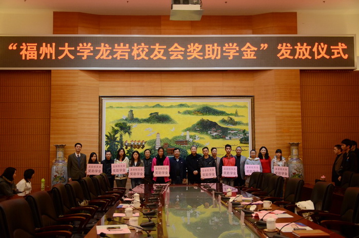 2010年,龙岩校友捐资设立“福州大学龙岩校友会助学金”,2011年扩大资助范围,设立“福州大学龙岩校友会奖助学金”,每年坚持资助一批龙岩籍优秀生和家庭经济特别困难的贫困生,年均发放金额约10万元,取得了良好的社会效果。今年共有30名学生获得“福州大学龙岩校友会奖学金”,20名学生获得“福州大学龙岩校友会助学金”。