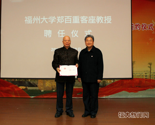 陈少平副书记向郑百重先生颁发聘书 福大记者团 张澜 摄