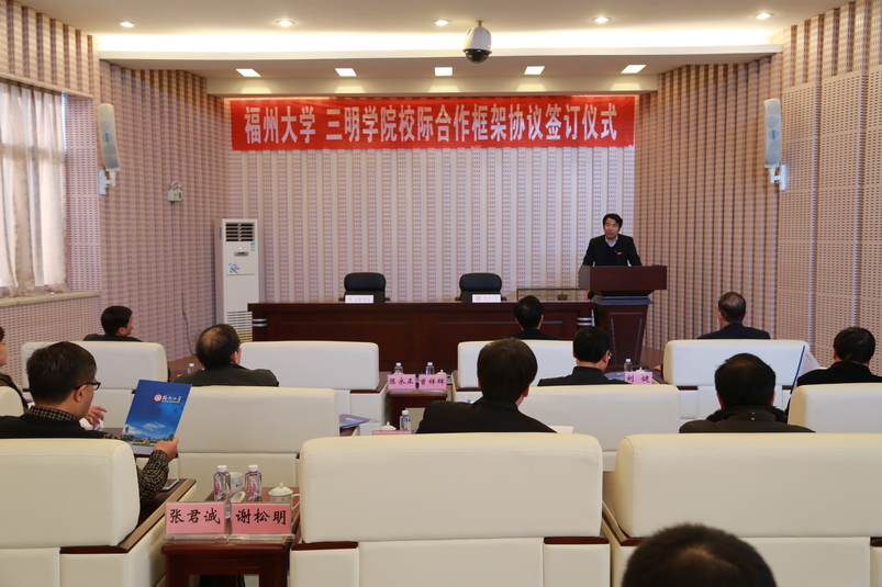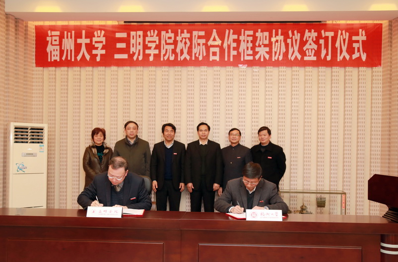 2月21日下午,福州大学和三明学院校际合作框架协议签约仪式在外事办报告厅顺利举行。