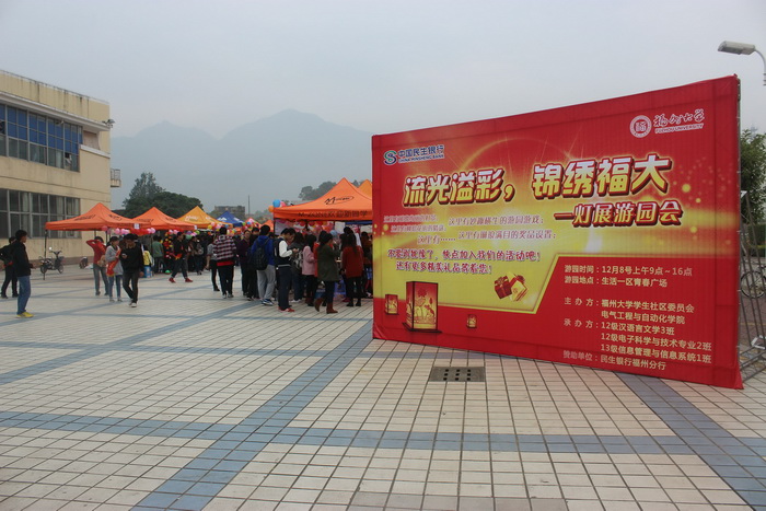 社区游园,感受传统文化。在紧张的期末考试来临之前,一场主题为“流光溢彩 锦绣福大”的大型社区游园活动正吸引着同学们的关注和参与,从百科竞答到闯关游戏、从猜灯谜到认字体、从特色商品展示到品尝美食,环环都体现着浓浓的中国风。广大同学走出宿舍、放松心情,他们相互配合、通力合作,在活动中感受着中国传统文化的魅力,一时间福大生活区变成了欢乐的海洋。