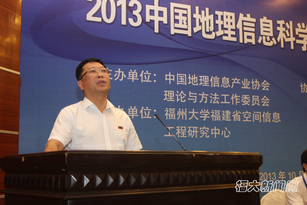 为了庆祝我校建校55周年,进一步提升我校的学术号召力和影响力,10月12日上午,中国地理信息科学理论与方法第九次学术年会在福州大学学术交流中心(怡山大厦)举行。大会名誉主席,十二届全国政协副主席、全国工商联主席、福建省空间信息工程研究中心主任王钦敏发来贺信向大会表示衷心祝贺,并向与会专家学者表示诚挚的问候与欢迎。福州大学副校长陈国龙和福建省测绘地理信息局领导致欢迎辞,中国地理信息产业协会领导致辞并宣布委员会更名决定。大会开幕式由中心副主任吴生主持。