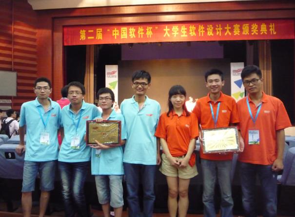 2013年8月24日~8月28日,由教育部、工业和信息化部、江苏省人民政府联合主办的第二届“中国软件杯”大学生软件设计大赛决赛在南京航空航天大学举行。我校代表队在傅仰耿与吴英杰老师带领的教练团队指导下,共有2支参赛队伍在来自全国包括985、211在内的500多所高校(其中985高校29所、211高校71所)的2216个参赛队中脱颖而出,成功晋级决赛。现场决赛共有来自中国科学技术大学、武汉大学、中山大学、重庆大学、福州大学、哈尔滨工业大学、北京理工大学、山东大学、四川大学、西北工业大学等80所院校的116代表队参加,我校参加决赛的MAYBE代表队(由2010级计算机专业李晓文、杨家顺、林少伟组成)完成的作品“基于Android平台的安全通信录”获全国三等奖、FZU风火轮代表队(由2010级计算机专业谢国忠同学、梁世朴同学组成)完成的作品“人脸识别及认证登录”获优秀奖。
