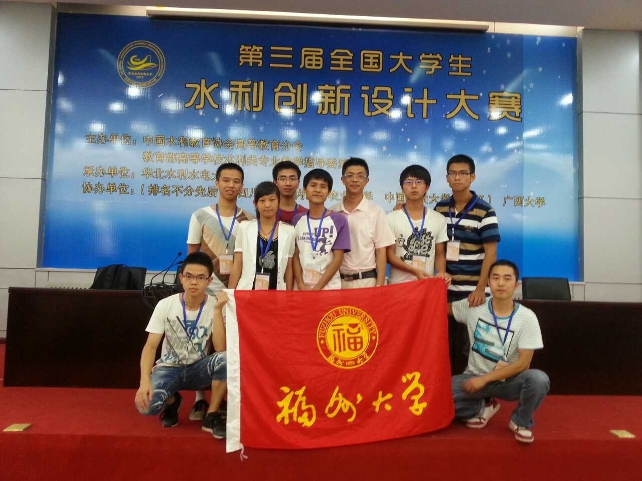 至8月1日,在华北水利水电大学举行的第三届“全国大学生水利创新设计大赛”中,我校由土木工程学院水利水电与港口工程系主任张挺教授为指导老师,两支参赛队伍:水利水电工程专业10级本科生王小威、胡德华、梁林、邹丽芬4名同学的作品《变坡度岸边溢洪道》和张甲元、林则江、王飞远、黎浩然4名同学的作品《可调开槽率锯齿形非淹没式竖直正调丁坝》,均获二等奖。