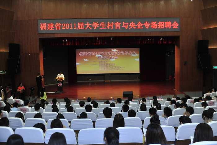 6月27日上午,福建省2011届大学生村官与央企专场招聘会在我校图书馆博学厅及福万广场举行,此次招聘会由福建省委组织部、福州大学以及中国人寿福建省分公司等六家知名央企联合举办。福建省委组织部杨国豪副部长、陈炎标处长,福州大学党委陈少平副书记、学生工作处程文忠处长,中国人寿福建省分公司党委书记、总经理黄秀美、《大学生村官报》总编王书明出席招聘会现场。校党委陈永正书记亲切会见了省委组织部领导及企业家代表。