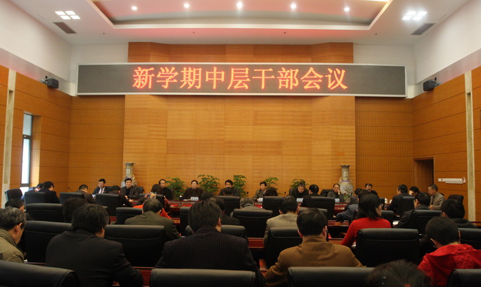 2月25日下午,校党委陈永正书记主持召开新学期中层干部会议。付贤智校长在会上对2012年工作作简要总结并对2013年工作进行部署,陈永正书记作重要讲话,在家校领导出席会议。机关各部处负责人、各二级党组织书记、各学院院长等中层干部参加了会议。