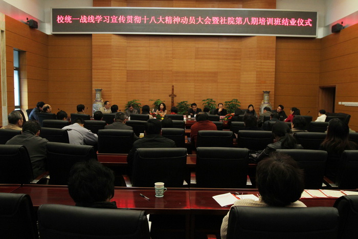 12月6日下午,我校统一战线在旗山校区123会议室召开学习宣传贯彻十八大精神动员大会暨第八期社院培训班结业仪式。校领导陈永正书记、王健副校长应邀莅会,校组织部、统战部、社会主义学院等部门负责人出席会议,各级人大代表、政协委员,各民主党派、统战团体骨干以及部分无党派人士应邀参加会议。大会由校党委统战部林秋生副部长主持。