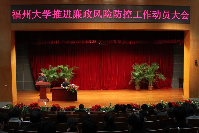 校党委陈尚义副书记要求各级各单位和全体领导干部,切实增强责任感和使命感,严格按照《福州大学关于推进廉政风险防控工作的实施方案》,进一步规范职权运行,健全廉政风险防控机制,在提高管理工作整体水平的同时,增强防控和化解廉政风险的能力,为学校的建设发展作出新贡献。