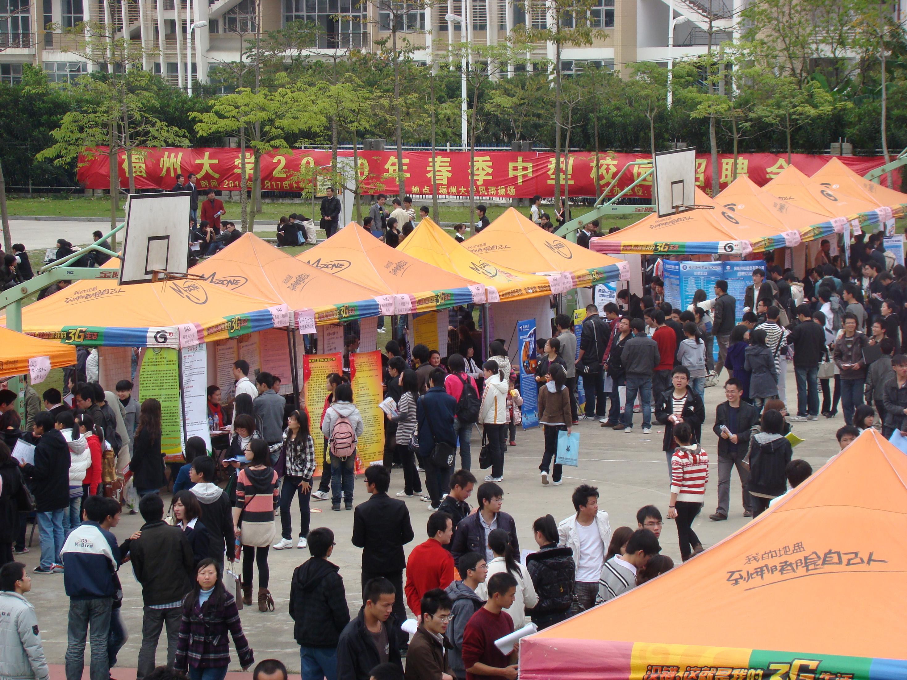 4月17日,福州大学2010年春季中型校园招聘会在我校旗山校区风雨操场顺利举行。校党委陈少平副书记亲临现场指导招聘工作。 三棵树涂料股份有限公司、厦门三安光电科技有限公司、漳州片仔癀药业股份有限公司等近160家企事业单位参加了本次招聘会,为2010届毕业生提供3000多个就业岗位,涉及销售、财会、软件、机械、电子等30多个专业。招聘会现场气氛热烈,人头攒动,吸引了省内外高校毕业生到场求职。招聘会现场还开展了职场心理交流活动,为应届毕业生提供求职期心理咨询,受到同学们的欢迎。