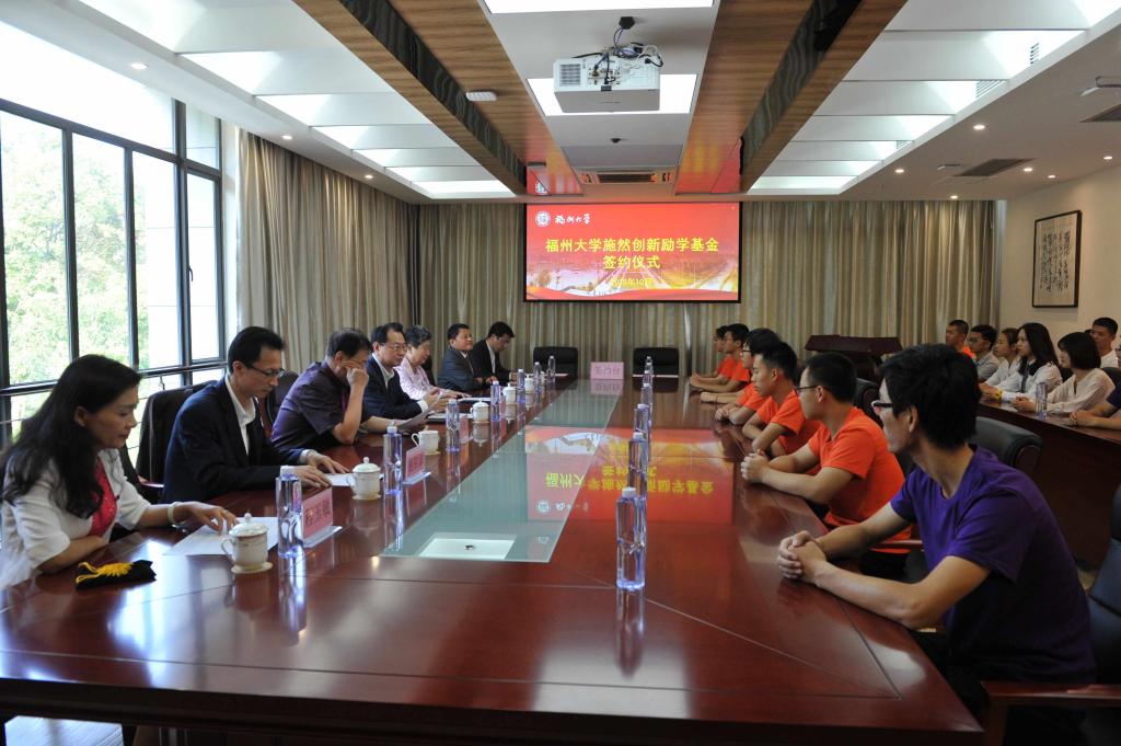 “福州大学施然创新励学基金”由清华大学博士、福建乡贤施锦珊和李然贤伉俪出资100万元捐赠设立,该基金旨在激励福大人进一步增强创新意识、提升创新能力,为国家和社会做出更大的贡献。
